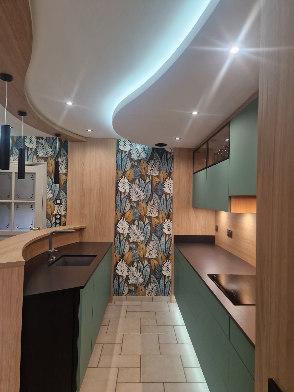 View Larger Image Cuisine sur mesureMenuiserie Lelièvre2025-10-24T14:23:08+01:00 Une belle réalisation de cuisine aménagée et équipée ; accessoires BLUM (charnières, tiroirs et relevants motorisés) Plan de travail DEKTON coloris SIRIUS Façades FENIX coloris Verde Brac (existe en plusieurs coloris)
